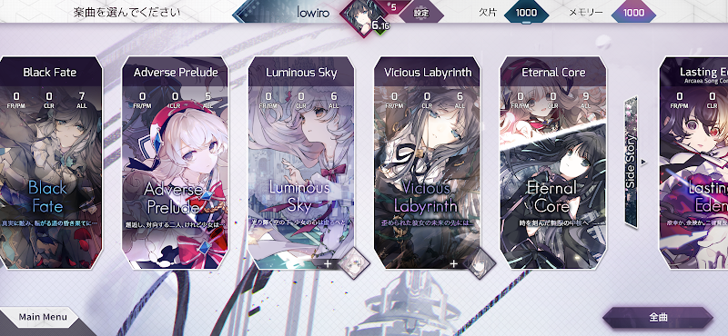 ★5 - 新曲はたまにカクつくものの落ちる事はほぼ無く、快適にプレイできます。星ポテ以上を目指すなら課金は必須になります。難易度は7〜11の+を含む1〜12まであり、無課金でプレイ可能な難易度は基本的に10までです。それでも100曲近くを遊ぶ事ができます。課金すると最大で約400曲遊ぶ事が可能です。 シエラ先生とすずなし先生中心のアートワークが美麗で惹き込まれます。 課金要素になりますが、コラボ以外のパックを買うとストーリーがついてきます。余談ですが織眼のストーリーを沢山の人に読んでほしい。口調最高。ひかたいのメインストーリーも良い。鳥肌が立ちます。 楽曲の解放に謎解きが必要な場面もままあり、楽しく解けるものからネットで答えを見ないとと全く解らないものまで様々です。お薦めパックはExtant AnimaとAbsolute Nihil。 アンダーテールパックとメガロバかめりあリミの購入は2026年の3/9までなので始めようとしている方は早めにご検討を。また3/9から周年セールがあり多くの楽曲を半額で購入可能です。 慣れるまでアークが難しい(※慣れても難しい)ですがぜひ遊んでみてください! すき!!