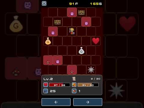 • 左に進むか右に進むかだけの直感的な操作でローグライクを楽しめる。 最初に操作キャラを選べるが、クリア回数で解放されていく為最初から全て選べると良かった。 パッと見シンプルなゲーム性だが、 ・敵アイコンをタッチする事で予想被ダメージ等の情報を知れる ・自分の手持ちのスキルも確認出来る これらを見て事前に戦略を立てつつ攻略するのが基本となる。 トラッパーの壁破壊がボスの周囲の壁も破壊可能だと、報酬だけ掠めとるという戦略性が生まれたかもしれない。 また、この壁と普通の壁が同じデザインの為、違うデザインにして貰えると破壊不可能なのが判別出来て良いと思った。 魔物使いは敵を倒しても経験値を取得不可能の為、エサ未保持の状態だと敵を避けつつハートとコインを集めるだけになってしまう。 また、1体の敵を仲間にして得られるのがスキルかステータスだけなので、錬金術師とトラッパーに比べるとステータス上昇が緩やかに思える。 トラッパーはトラップ、魔物使いは魔物に積極的にぶつかっていく必要がある。 その為接触前に獲得スキル・ステータスを確認出来ると戦略も立てやすいと感じた。